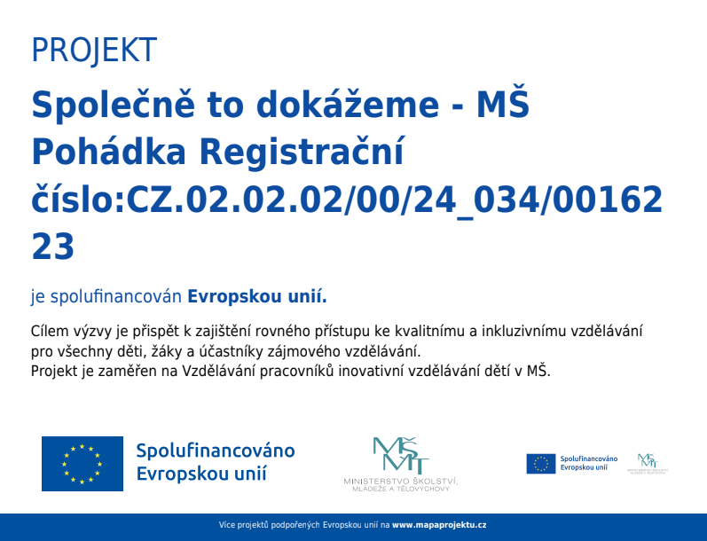 Projekt je zaměřen na zkvalitnění předškolního vzdělávání